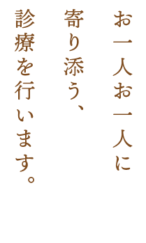 些細なことでも気軽にお話しいただき、しっかりとコミュニケーションを取りながら診療を行っていきたいと思っております。