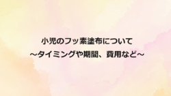 小児歯科 【和光市の歯医者】小児のフッ素塗布について~タイミングや期間、費用など~ 小児歯科治療の1つであるフッ素塗布は、文字通り歯にフッ素を塗布することにより、歯質の強化、歯の再石灰化の促進、虫歯の予防といった効果を発揮するものです。 シーラントと並び、一般的な小児歯科治療に数えられるフッ素塗布ですが、今回は、こちらを実... 2023.06.24 小児歯科